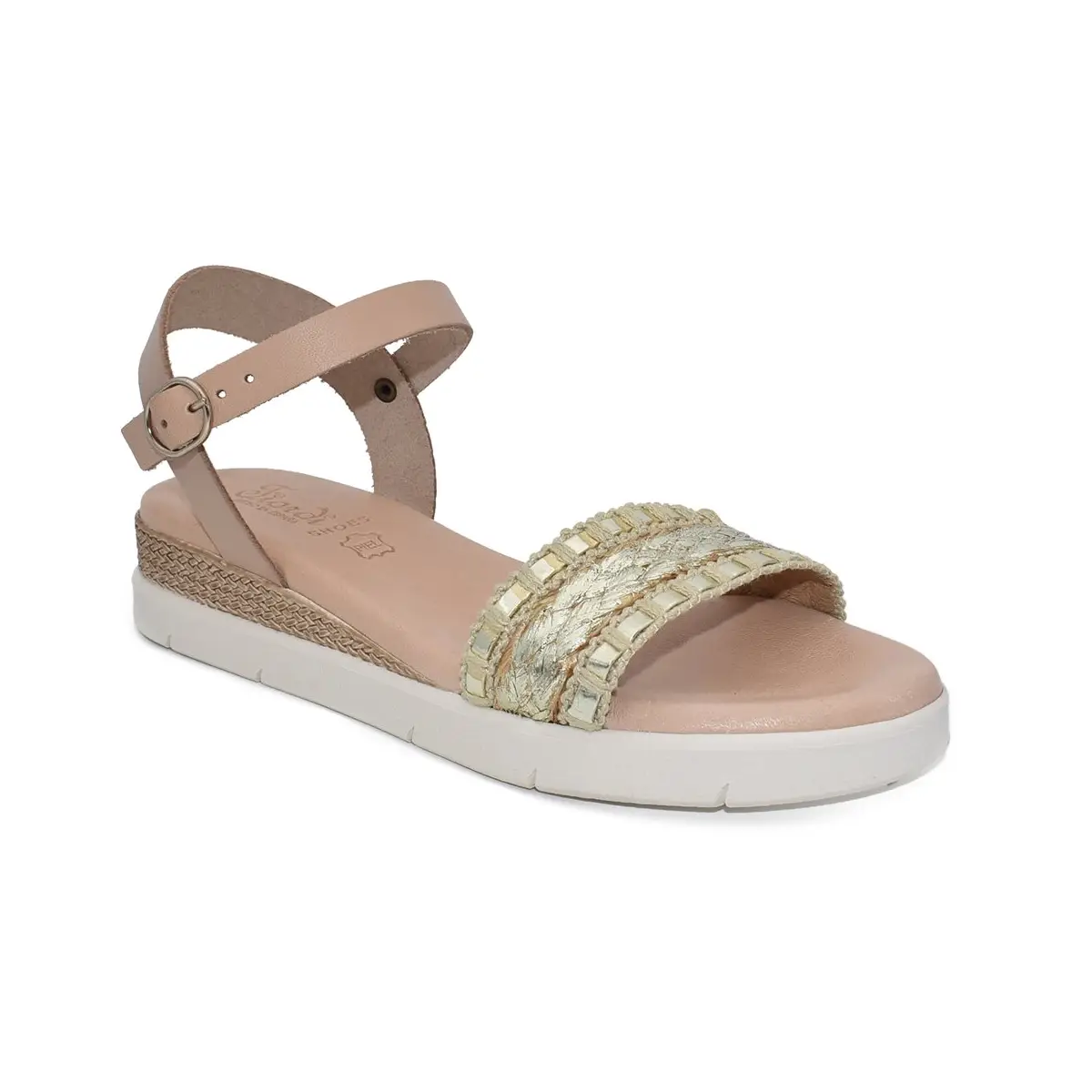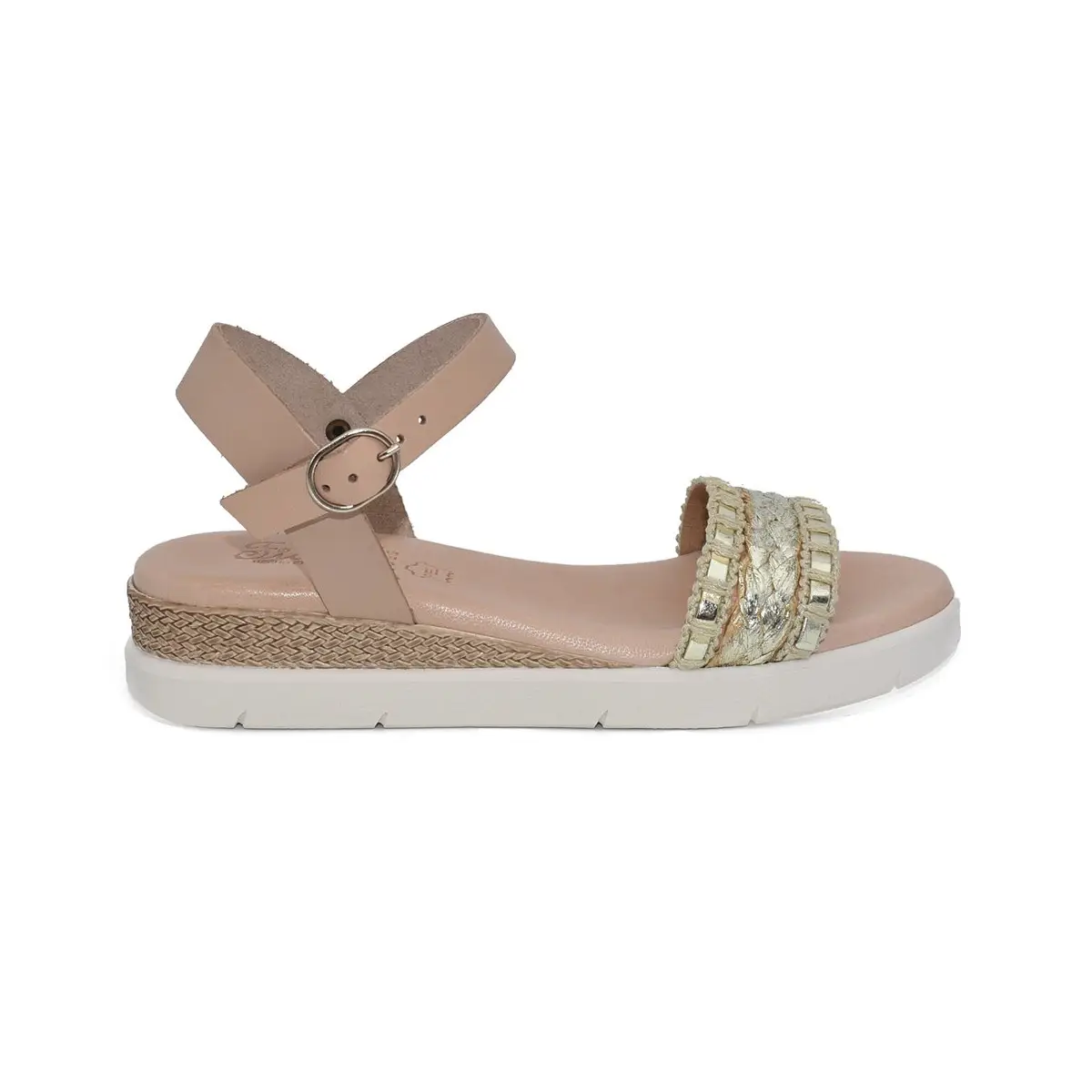 Gel-filled leather insole, strap and velcro fastening and bicolor light polyurethane sole with anti-slip sole.