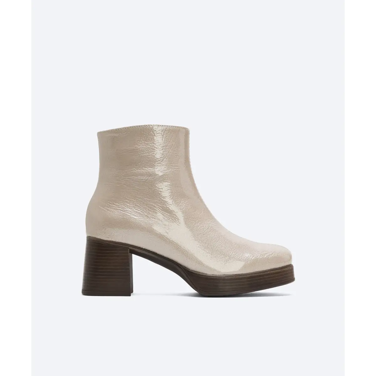 Women's black leather boot model Telma with appliqué on the side. Made with an 8 cm high heel and a 1.5 cm platform. Closure with zipper on the inner side. Leather insole filled with gel